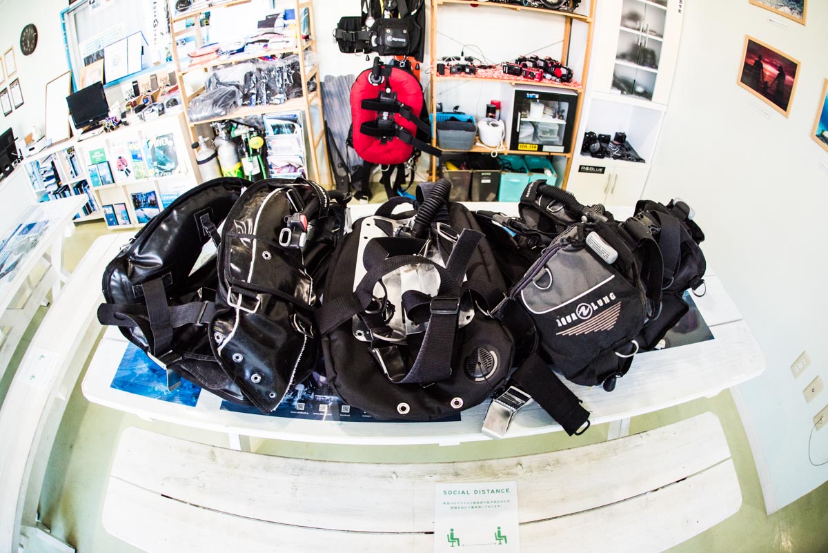 器材ボックス管理の仕事は、タンクやBCD、レギュレーターなど器材の点検・整備、洗浄・乾燥、パーツの発注と在庫管理が基本です。